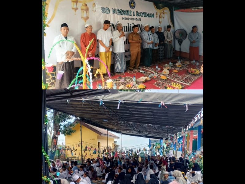 Pada Hari Selasa Tgl 9 September 2025, SDN 1 Bayeman dipenuhi suasana khidmat dan gembira dalam menyambut peringatan Maulid Nabi Muhammad SAW. Seluruh siswa, guru, dan wali murid berkumpul di halaman sekolah yang telah dihiasi dengan nuansa Islami. Acara dimulai dengan pembacaan ayat suci Al-Qur'an yang dilantunkan dengan merdu oleh ananda Maura Kirana Maheswari. Suaranya yang syahdu membawa ketenangan di hati hadirin, seolah-olah membuka pintu gerbang keberkahan.